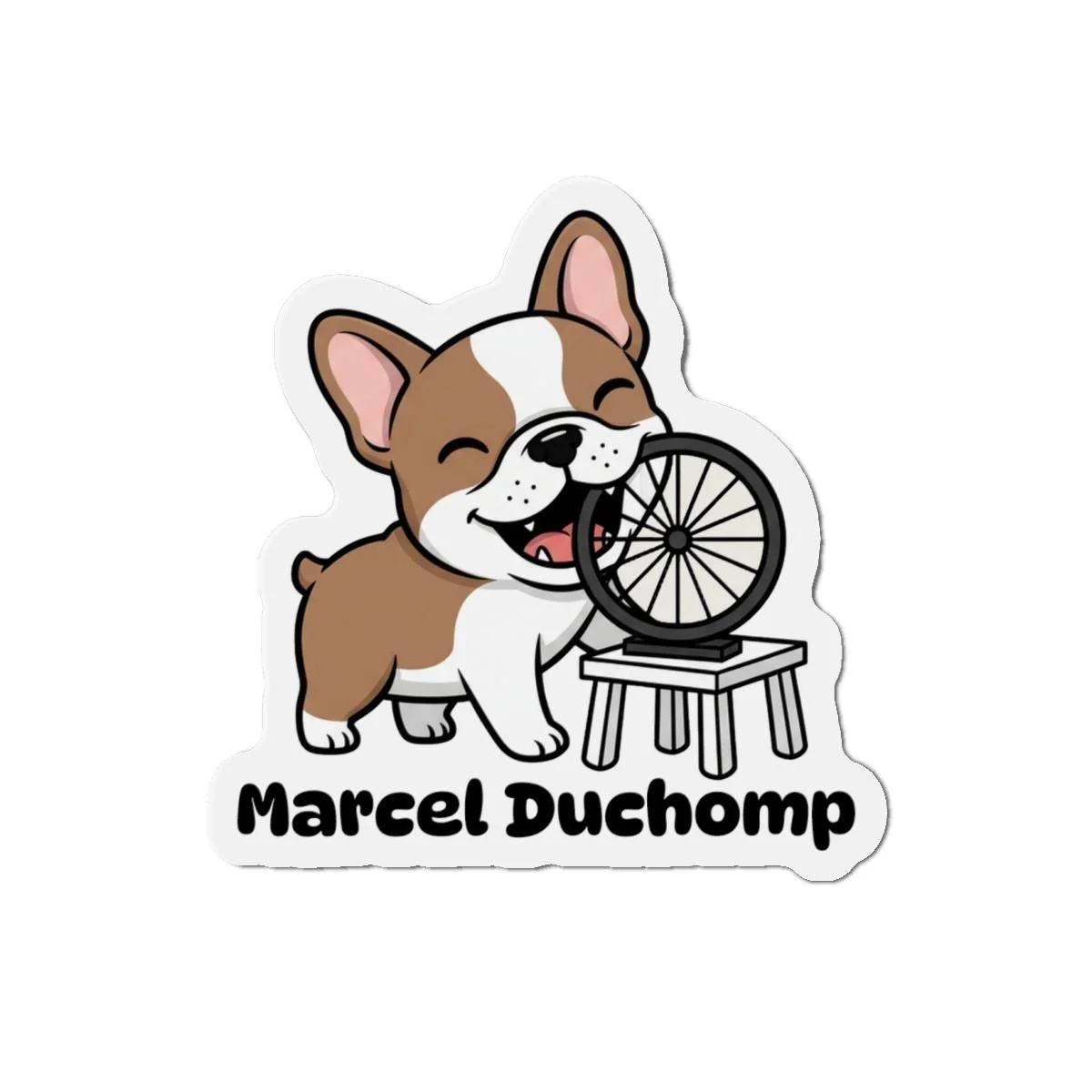 🐶🛞 Meet Marcel Duchomp — the mischievous Frenchie of the Art Friends series! This adorable pup happily chomps the iconic bicycle wheel sculpture, blending classic art-history wit with kawaii charm. With big expressive eyes, a wagging tail, and a joyful open-mouth smile, Duchomp brings a burst of fun to any magnetic surface.