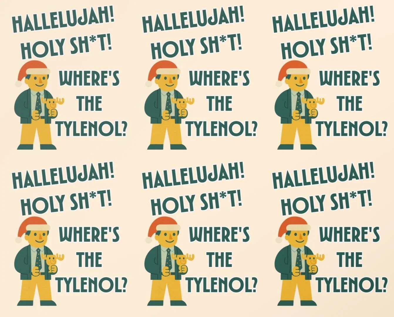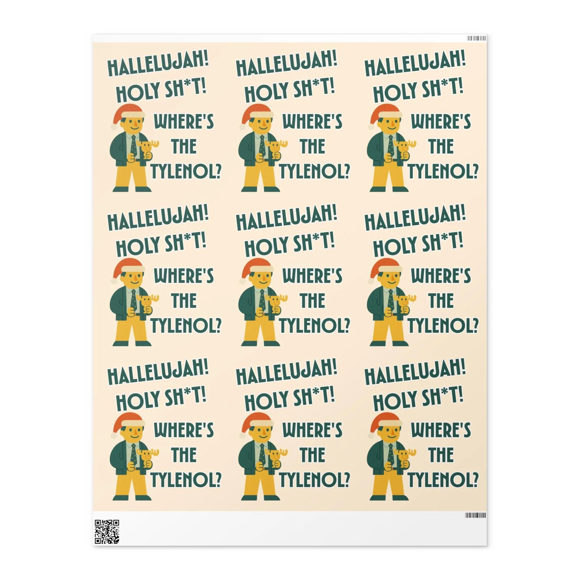Get ready for some serious holiday cheer (and maybe a little headache!) with our exclusive "Hallelujah! Holy S**t! Where's the Tylenol?" wrapping paper! This design is a perfect blend of Mid-Century Modern style and a classic holiday movie moment. It's the ultimate wrap for anyone who appreciates the humor and chaos of a truly memorable family Christmas.