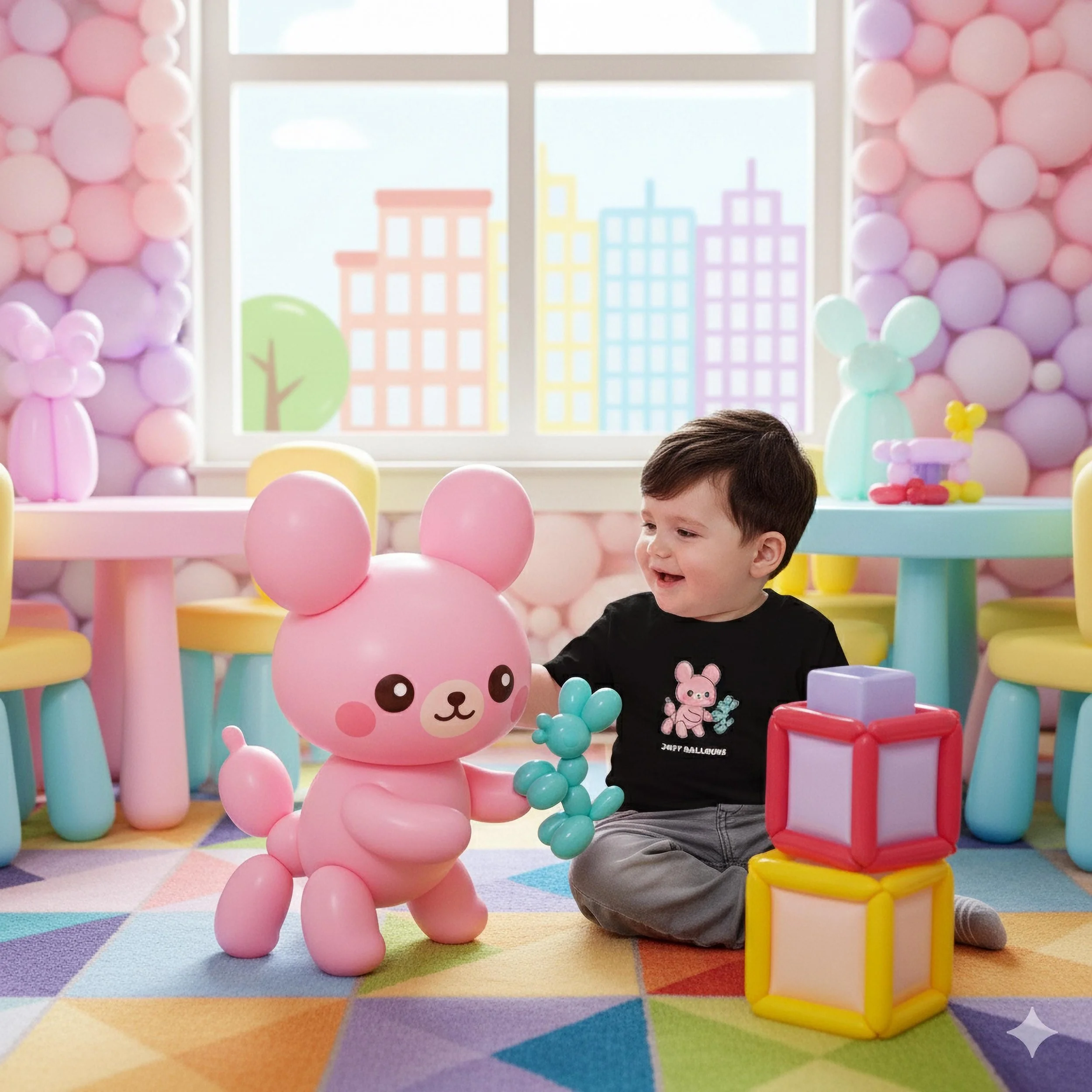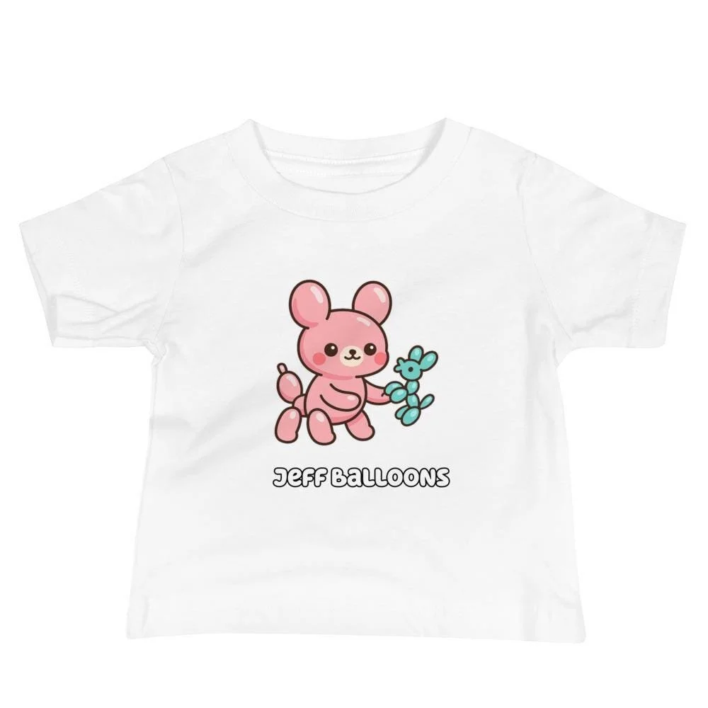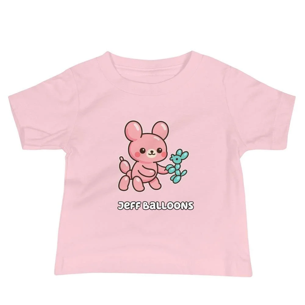 Ready for a playful art statement? This Jeff Balloons Baby Tee showcases a smiling pink balloon animal holding its cute blue balloon dog. The design is glossy, smooth, and fun, just like the famous sculptures it parodies. This shirt is a high-quality, eye-catching piece of wearable Pop Art. Key Features: Soft, durable cotton; easy on/off design; high-quality, unique print; a great gift for artistic parents.