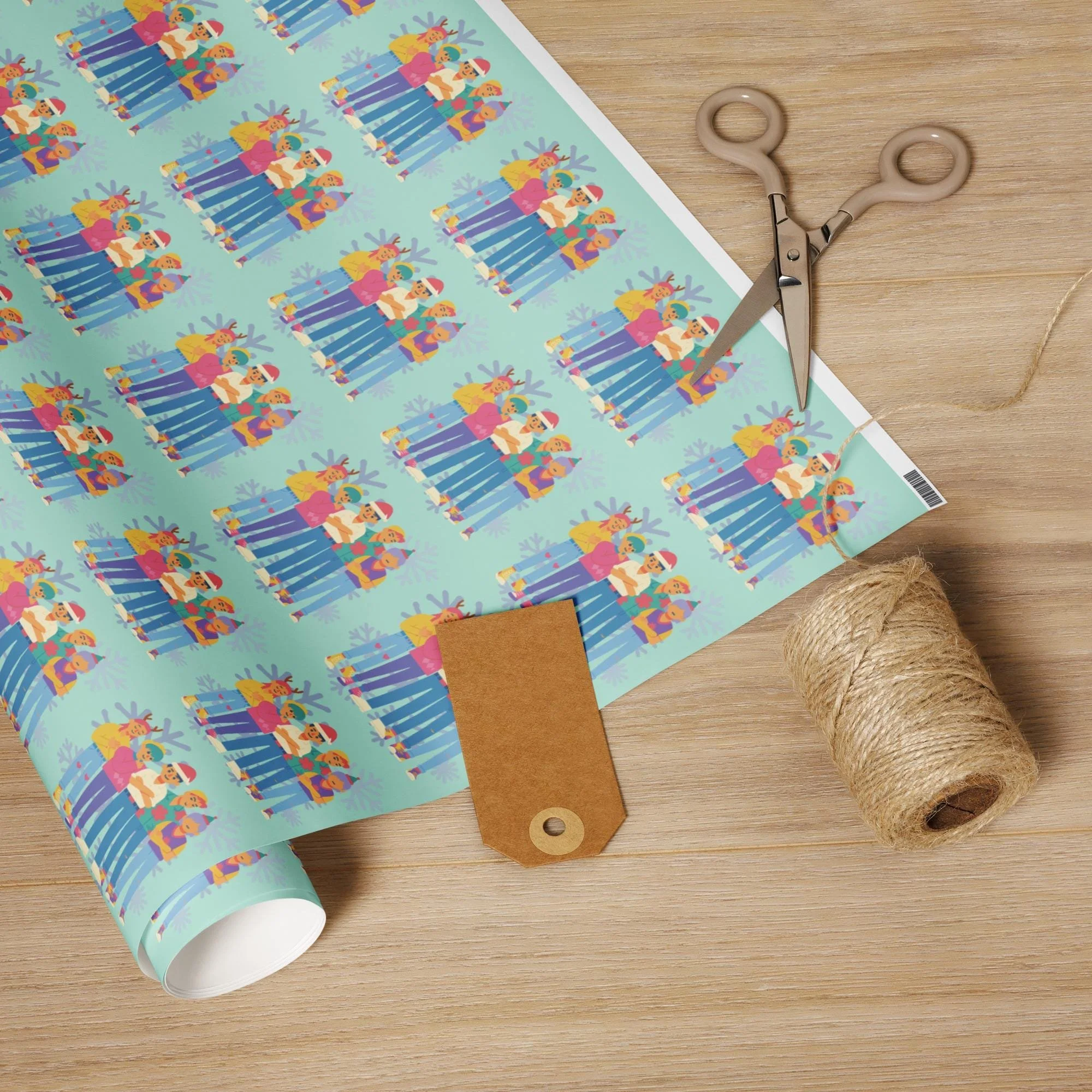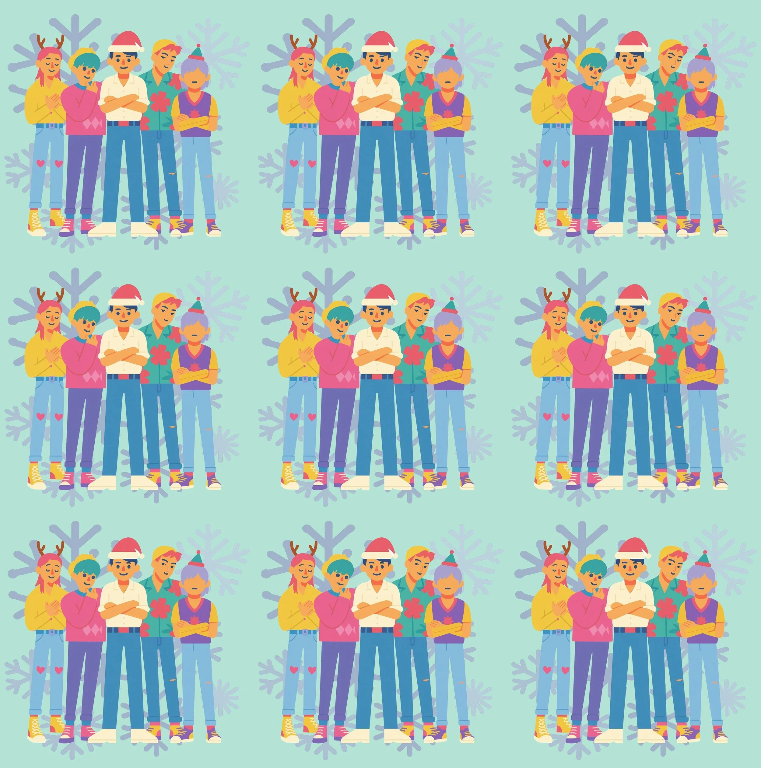 The Ensemble: This wrap celebrates the full power of the group, showing each figure in a vibrant, stylized pose, all clad in fun winter and holiday accessories.