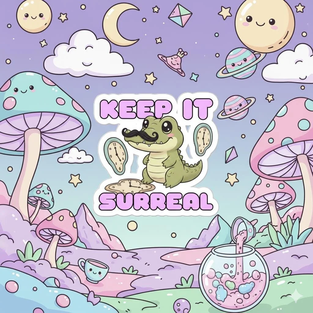 Keep It Surreal Daligator Sticker • Cute Surrealist Alligator Art • Art Friends Kawaii Bubble-Free Sticker • 3x3 4x4 5x5