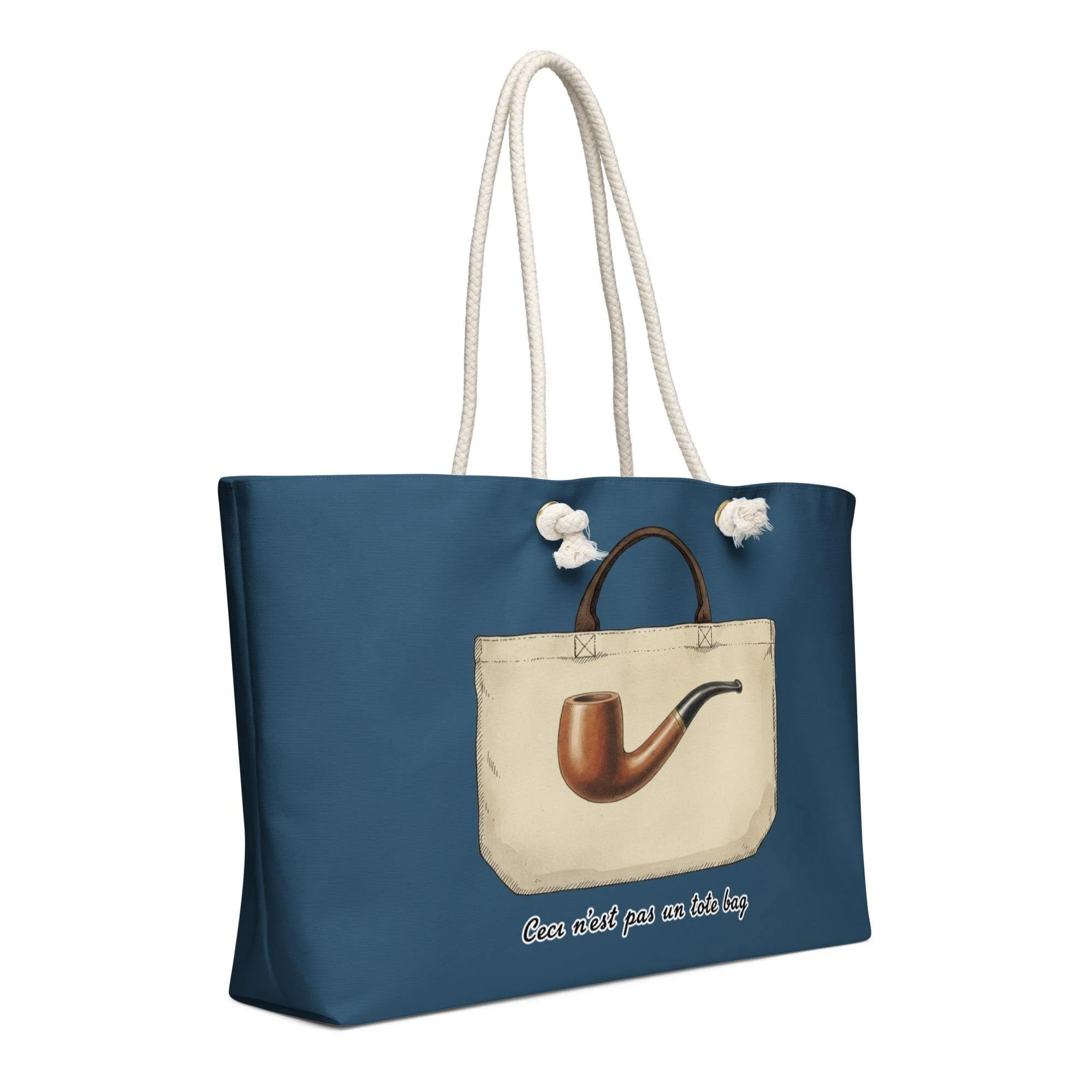 🎨 Concept This isn’t just a bag—it’s an idea. Inspired by René Magritte’s famous “The Treachery of Images,” this design features a printed tote bag with a painted pipe—and the phrase “Ceci n’est pas un tote bag” (“This is not a tote bag”). The result? A playful paradox of art and function: a tote bag printed on a tote bag that isn’t really a tote bag at all. Designed by The Trophy Room LA, this surreal conversation piece blurs the line between art object and accessory—a wink for art collectors, museum lovers, and philosophy nerds alike.