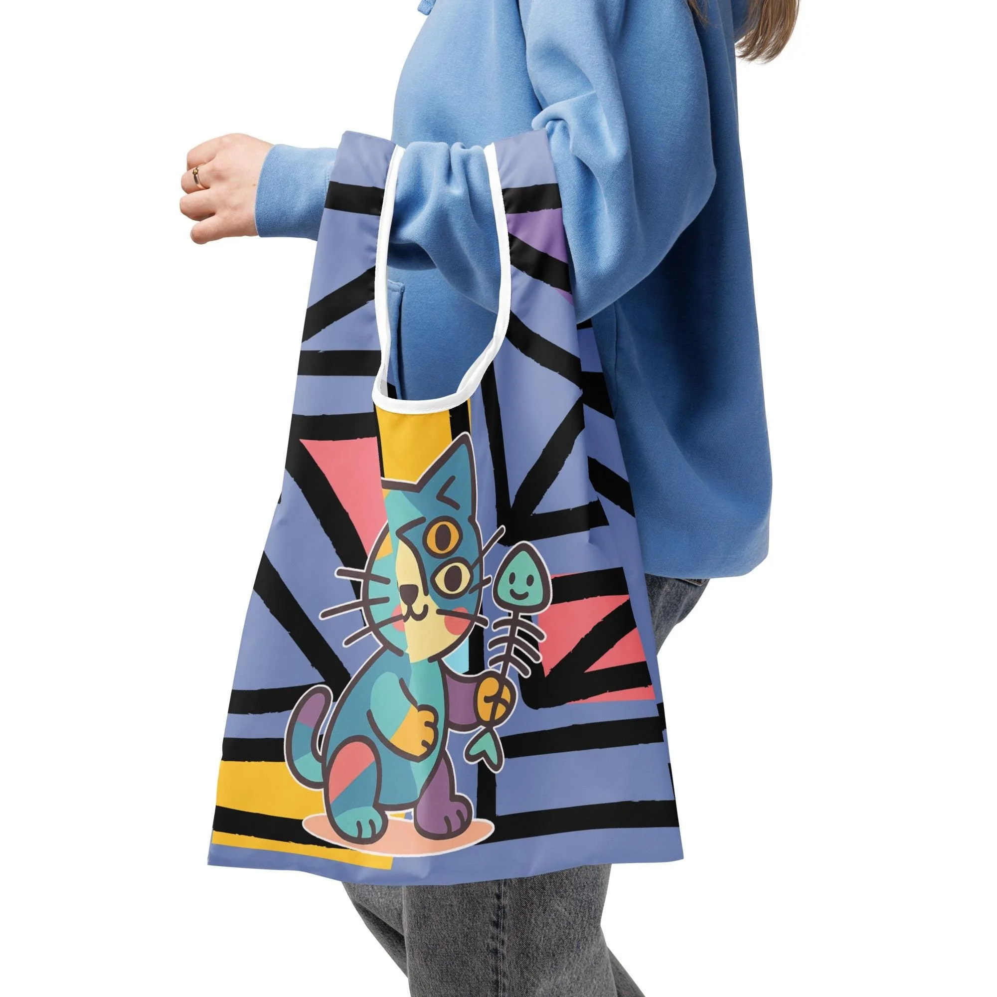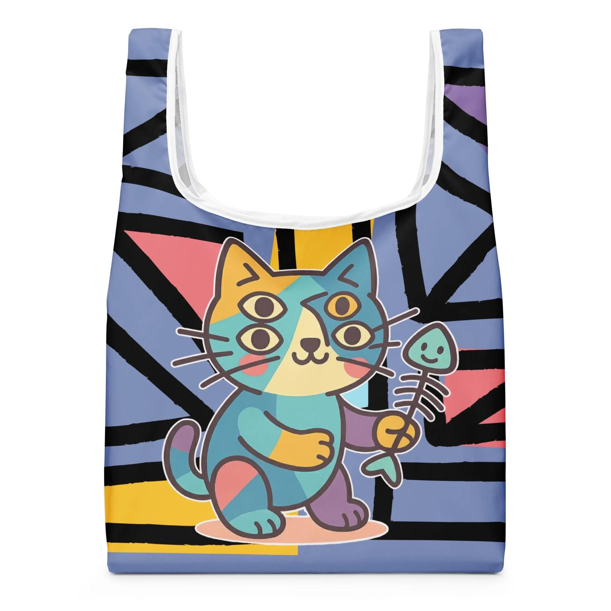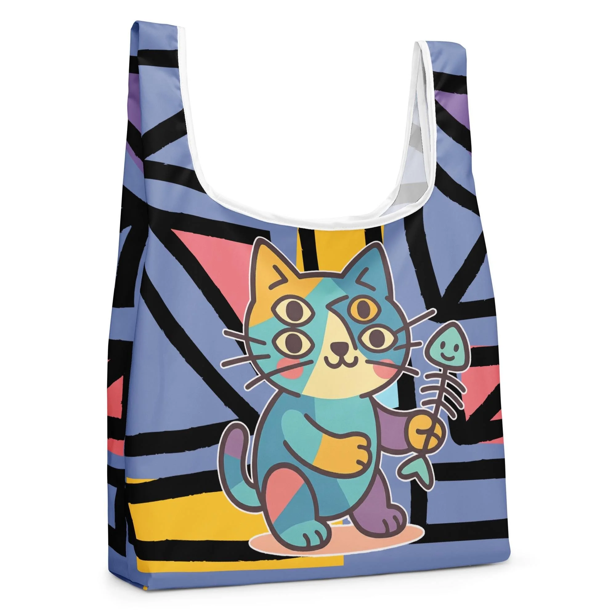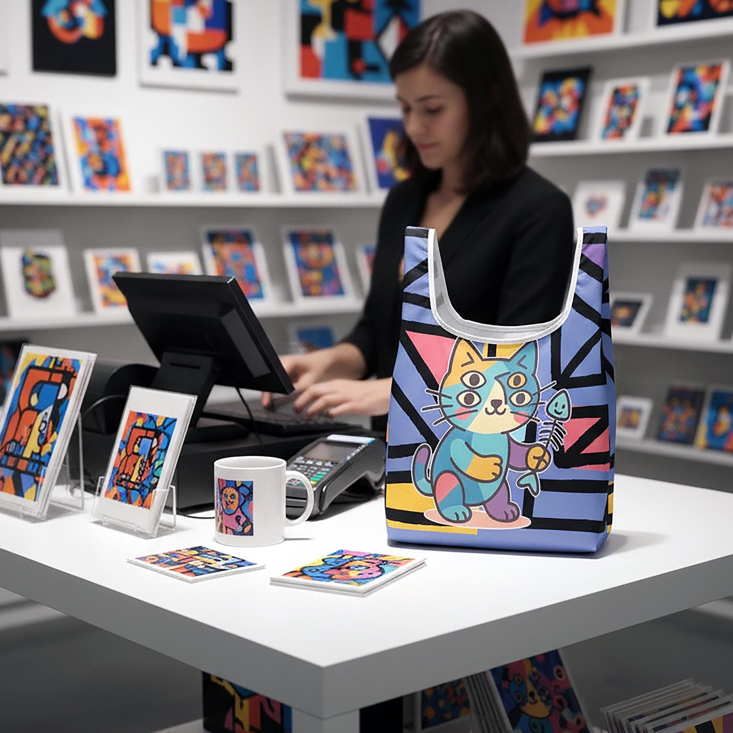 Meet Purrcasso, the cubist-inspired cat redefining reusable fashion. This lightweight, eco-friendly shopping bag transforms everyday errands into an art exhibition — complete with fractured geometry, pastel hues, and that unmistakable feline flair.
