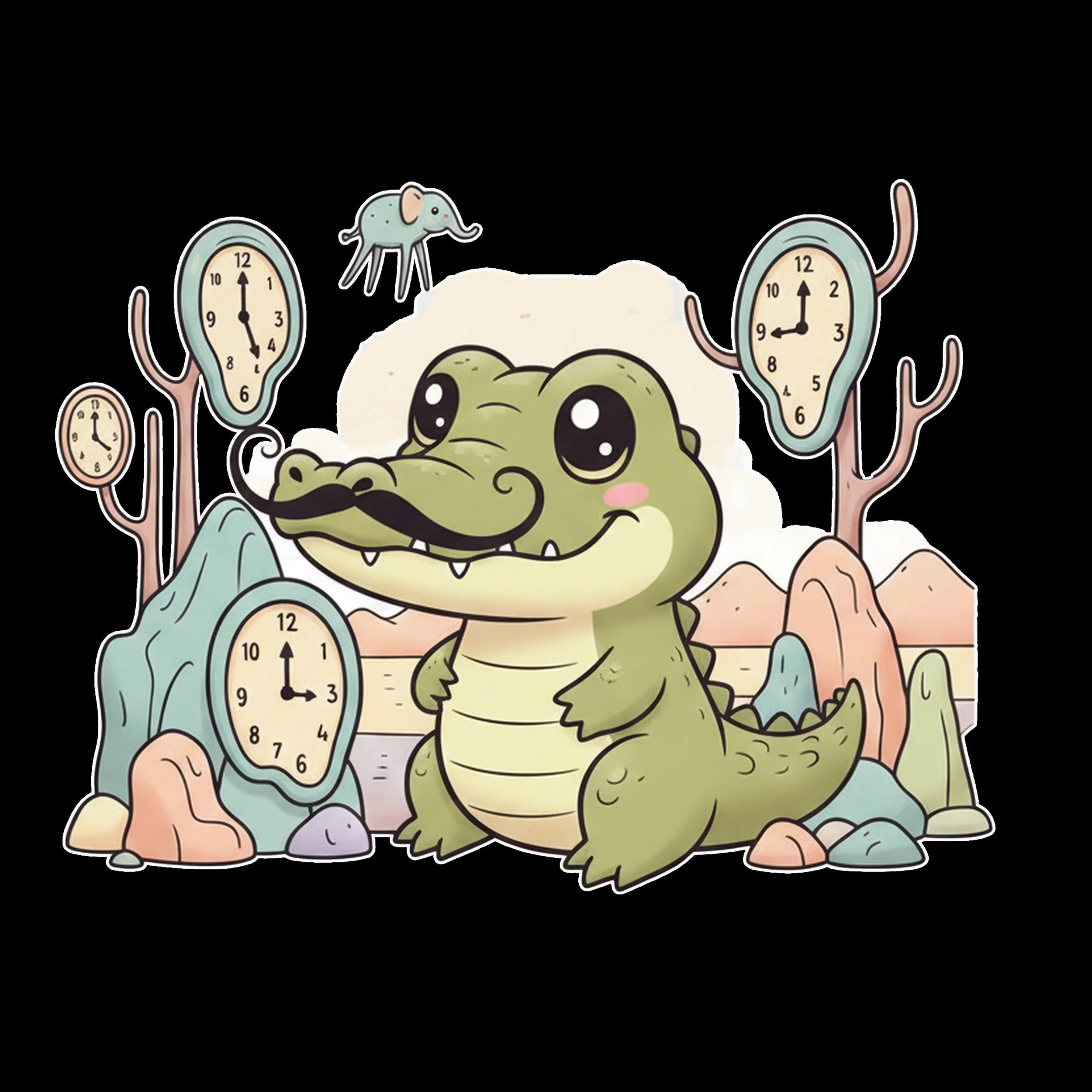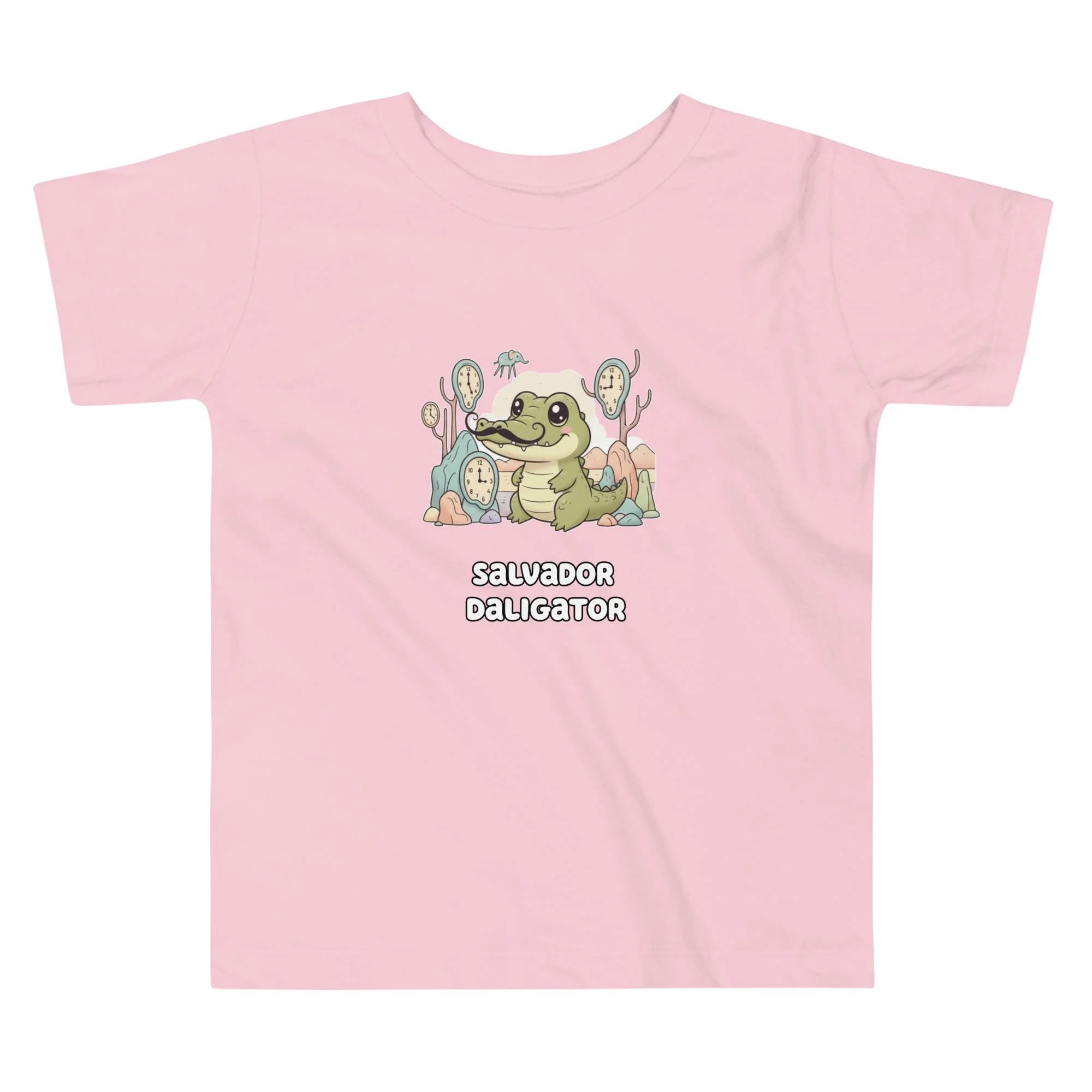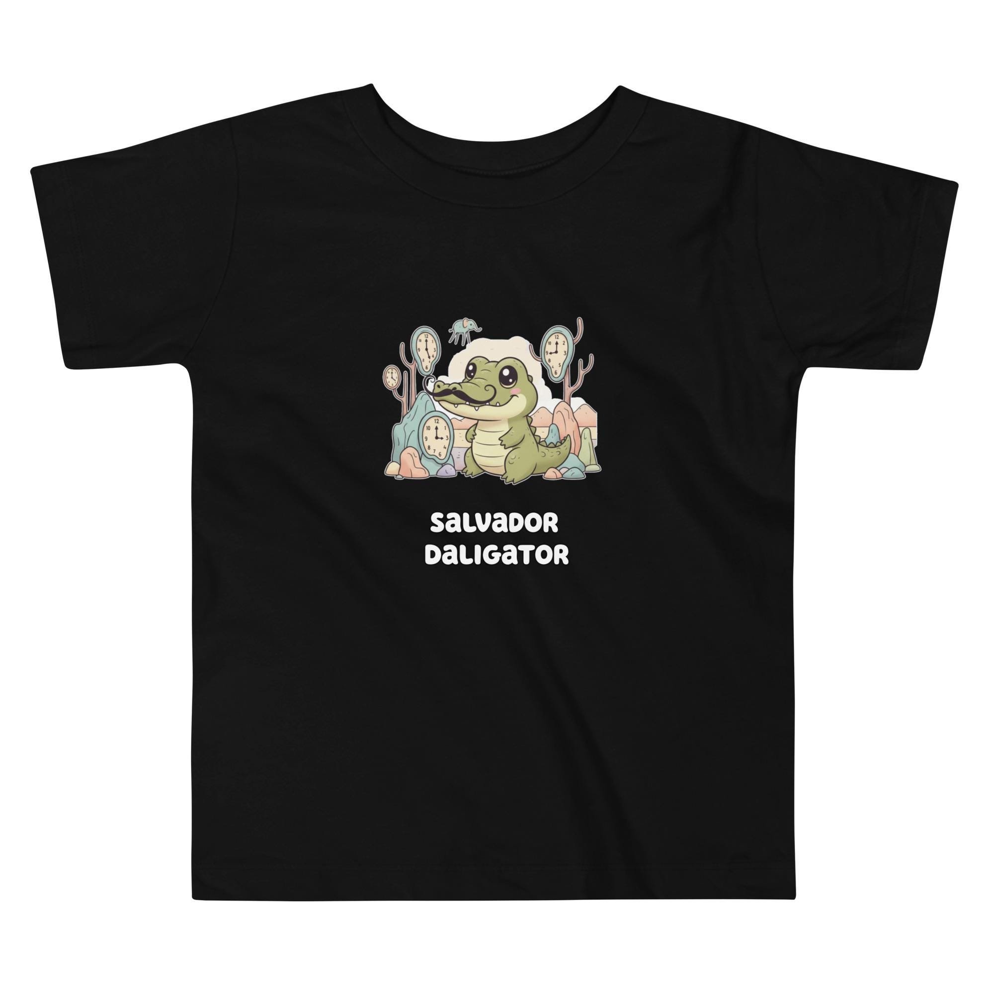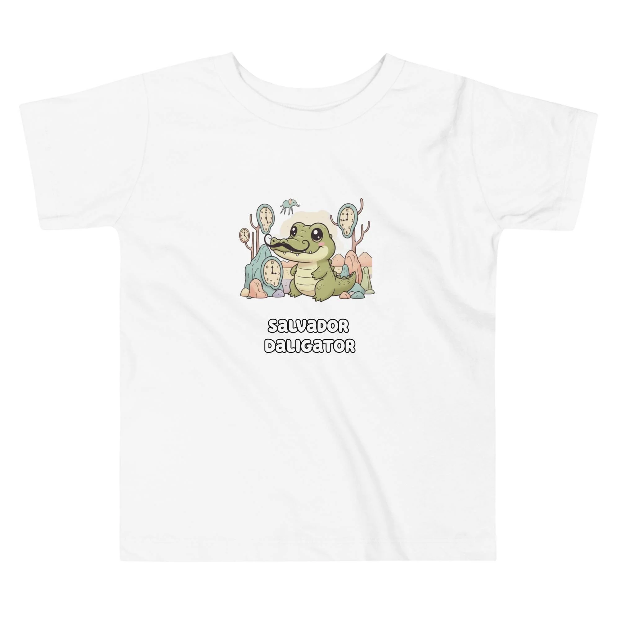Time doesn't matter when you're this cool! The Salvador Daligator Toddler Tee brings the delightful, dream-like quality of Dalí's artwork to life. It features the charming alligator, complete with his iconic mustache, posing among the melting clocks and surreal landscape elements. It's unique, memorable, and a great way to inspire imagination! Key Features: Durable, comfortable cotton; soft, high-quality print that lasts; an excellent gift for clever, artistic parents..