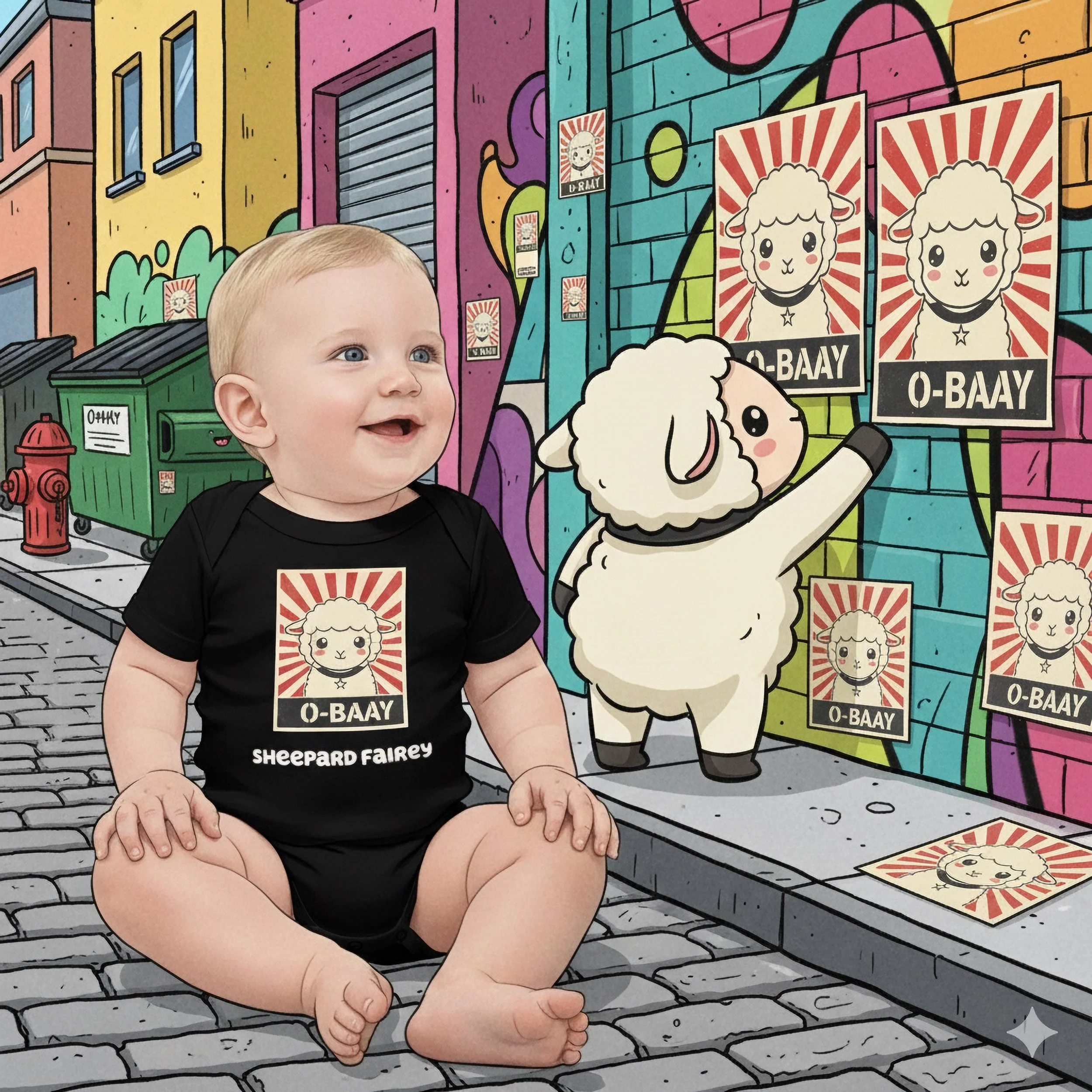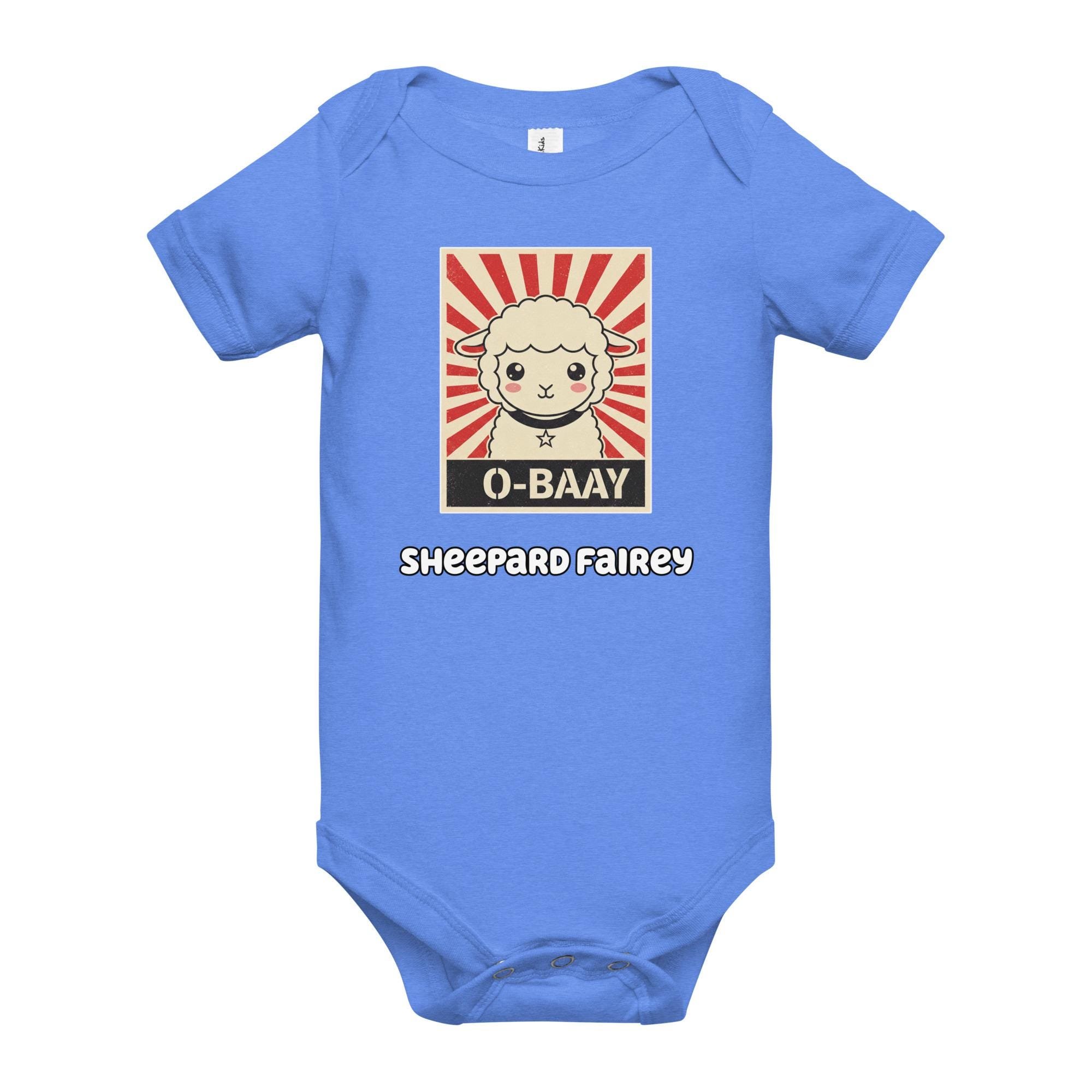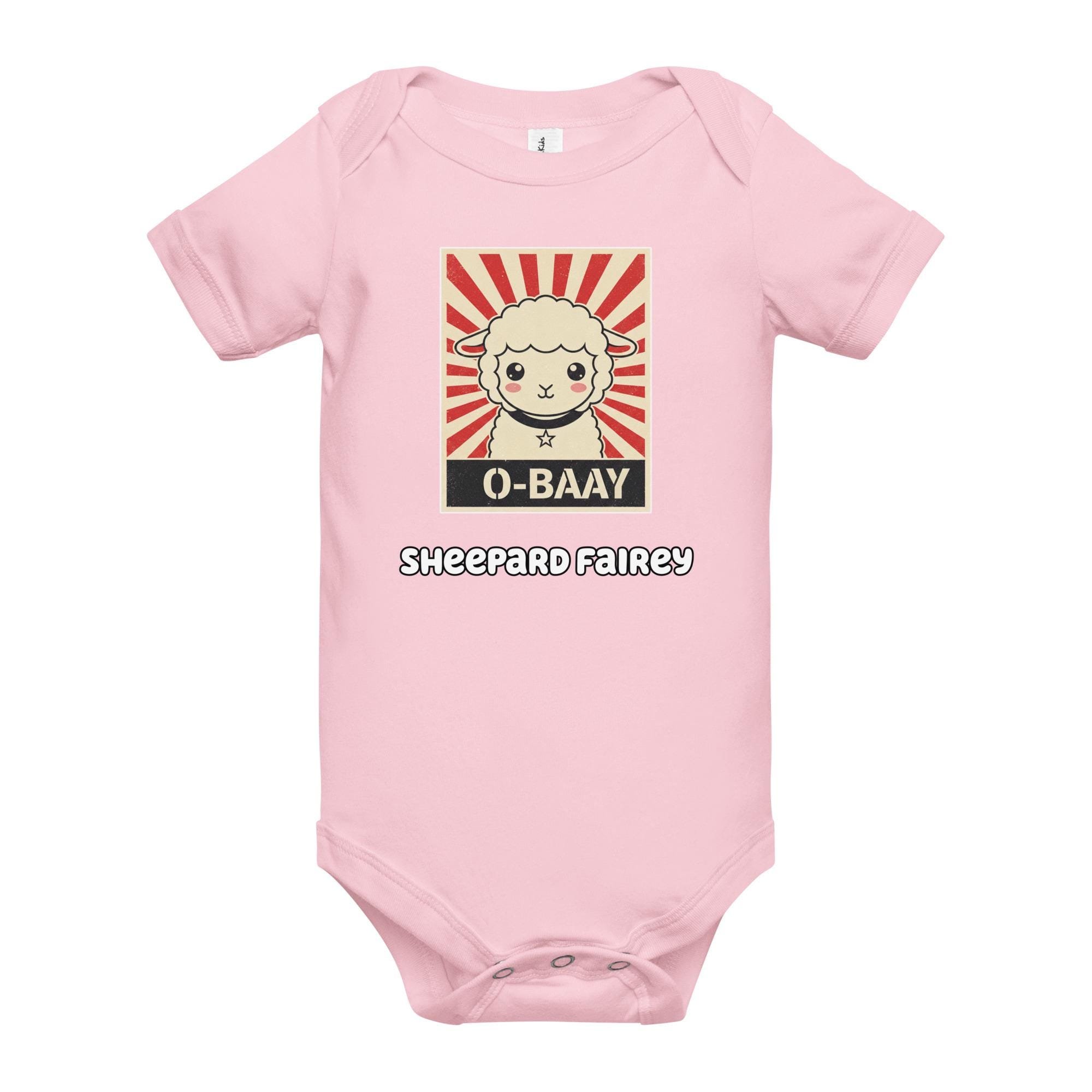 Demand cuteness in a bold way! This hilarious Sheepard Fairey Baby Bodysuit features an adorable lamb in the style of a classic street art poster, with the unforgettable message "O-BAAY." It's a witty, high-impact tribute to pop culture and propaganda art, perfect for the baby who runs the household. Key Features: Soft, baby-friendly cotton; convenient snap closures; unique, high-contrast street art graphic.