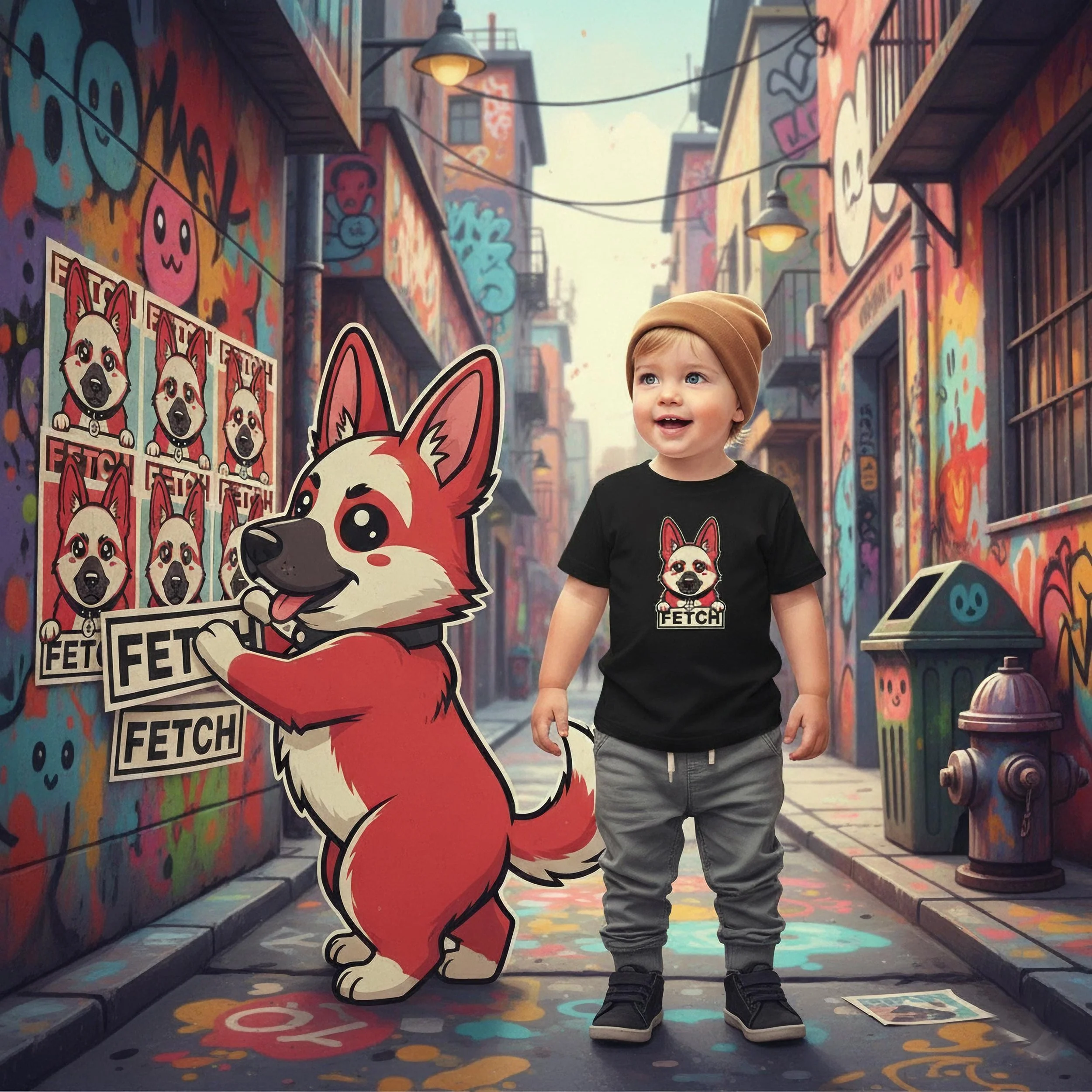 Your toddler's new favorite demand! The Shepard Furry Toddler Tee features a bold, iconic puppy (in a striking red and cream palette) holding a sign that simply says "FETCH." It’s a unique, stylish, and comfortable shirt perfect for energetic kids who know what they want and parents who love modern street art. Key Features: Durable, comfortable cotton; vibrant, high-quality print that lasts; an excellent, clever gift for stylish, dog-loving parents.