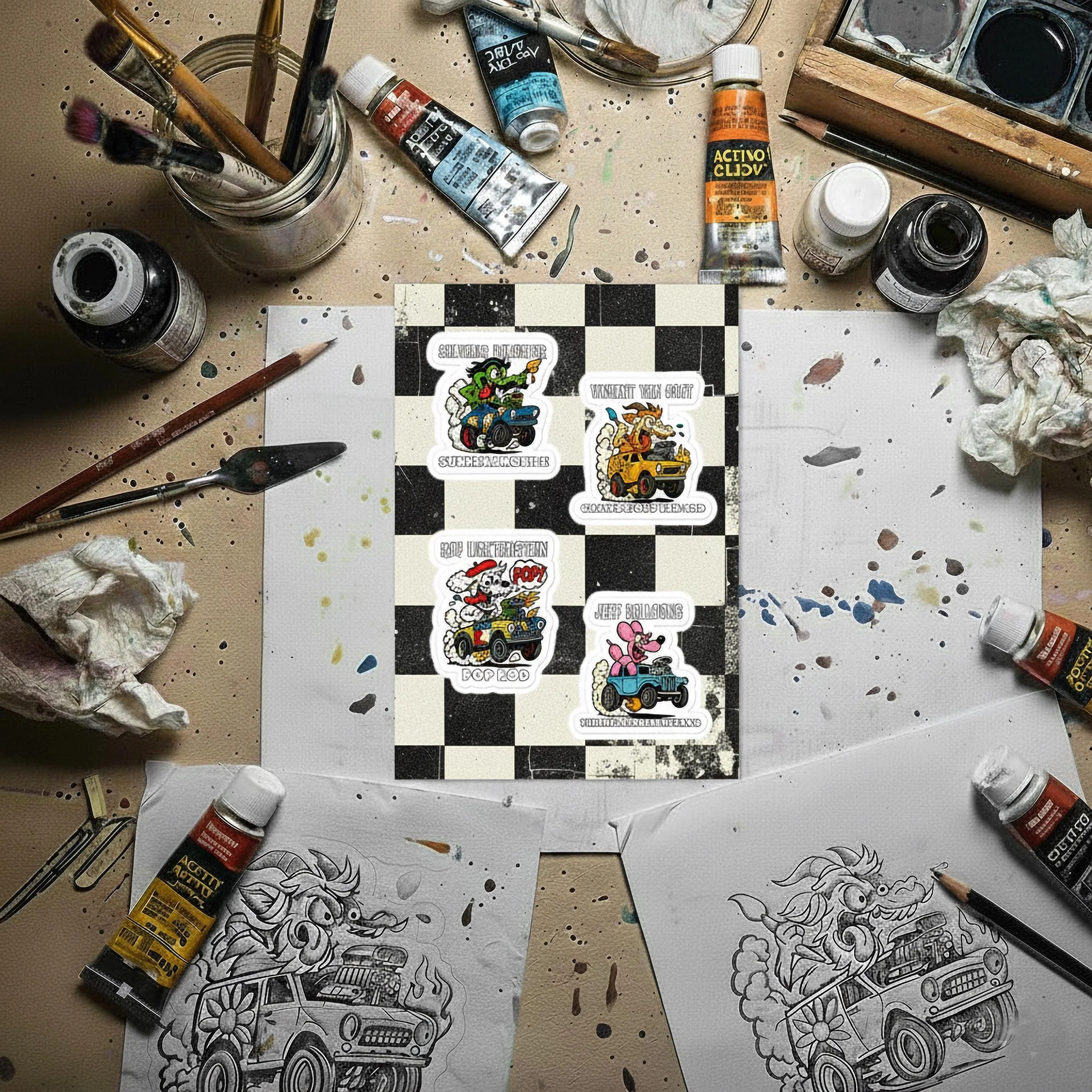 Bridging the gap between the gallery and the everyday. Our store now features original available artwork alongside our limited-edition Art Friends collectibles and premium The Trophy Room LA essentials. Whether you are investing in a new canvas for your wall, outfitting the next generation, or grabbing a custom sticker, every piece is a curated trophy for your personal collection.