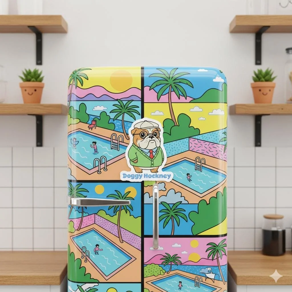 Doggy Hockney Magnet Kawaii Artist Parody Magnet for Kids and Fridge Decor