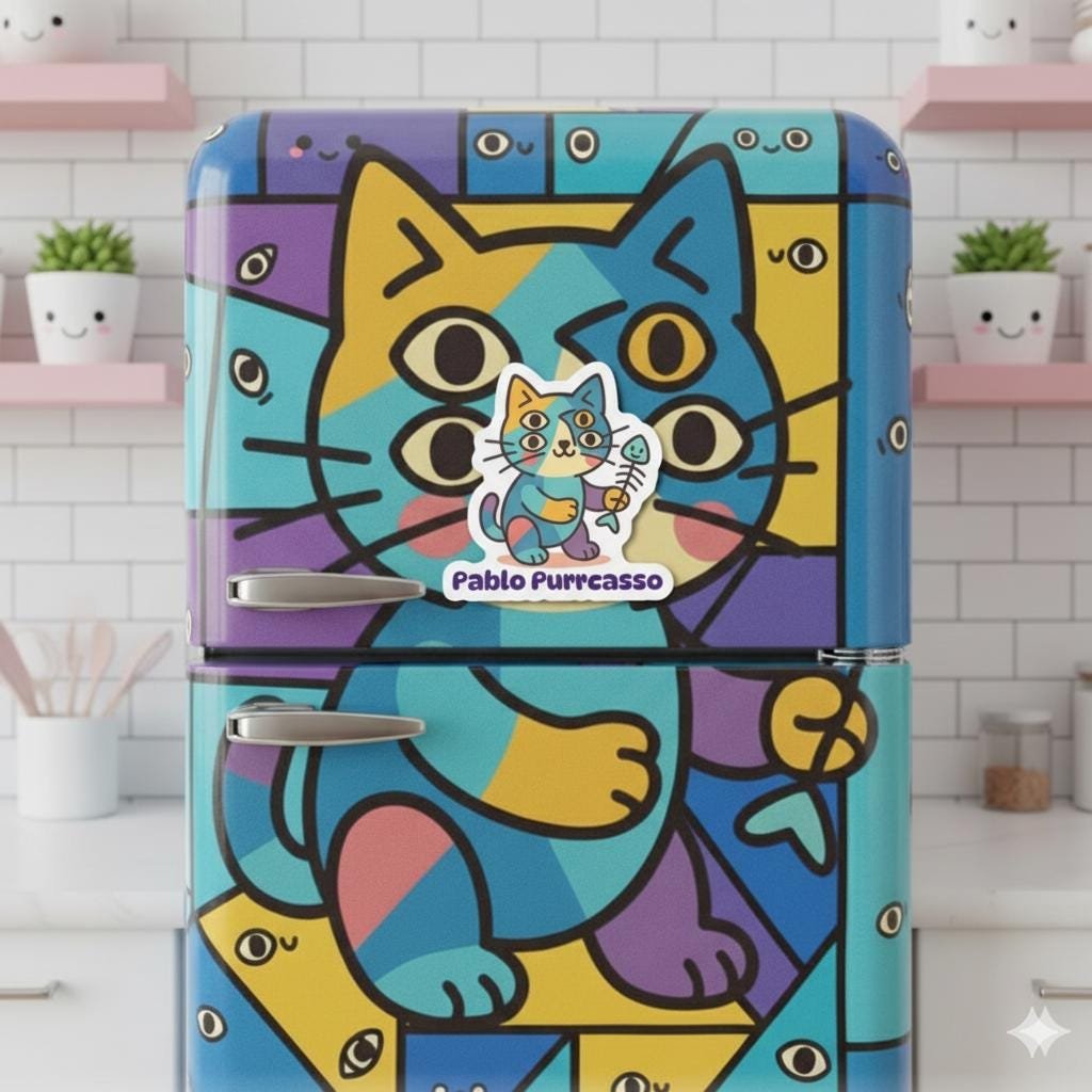 Purrcasso Magnet Kawaii Artist Parody Magnet for Kids and Fridge Decor