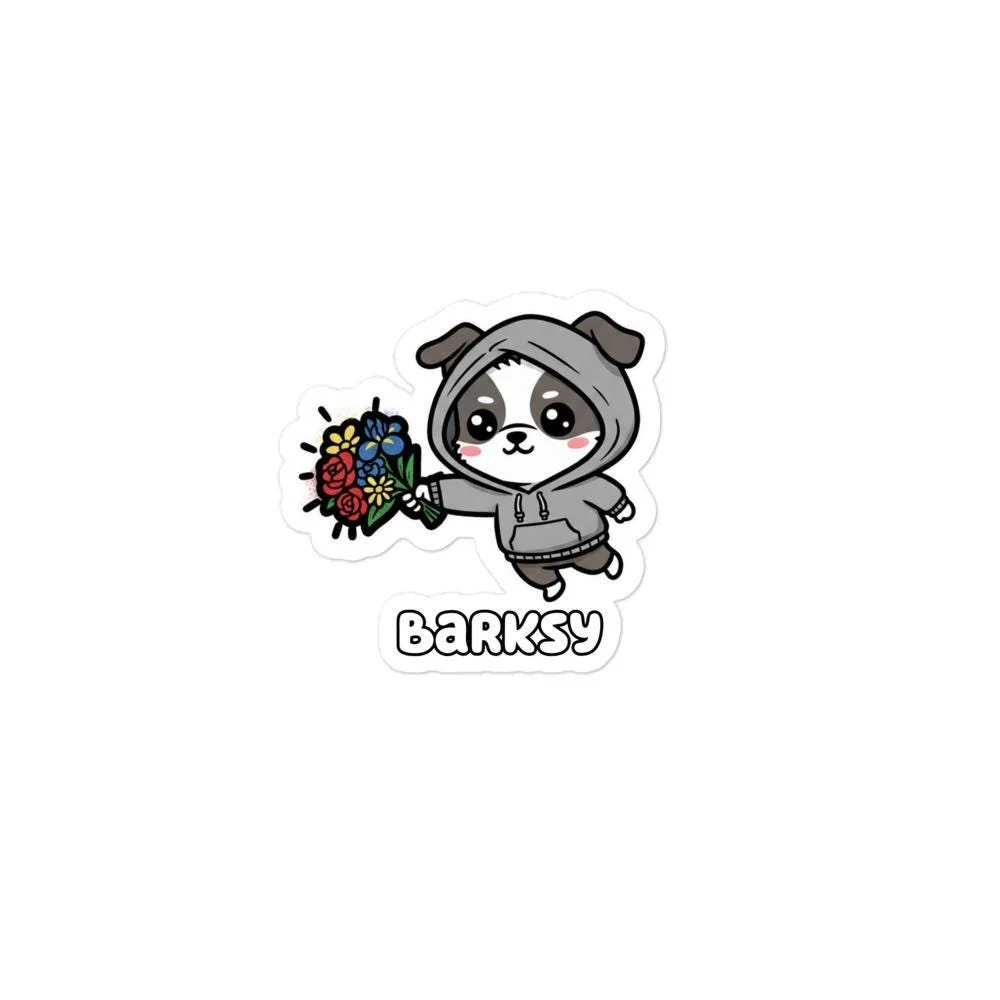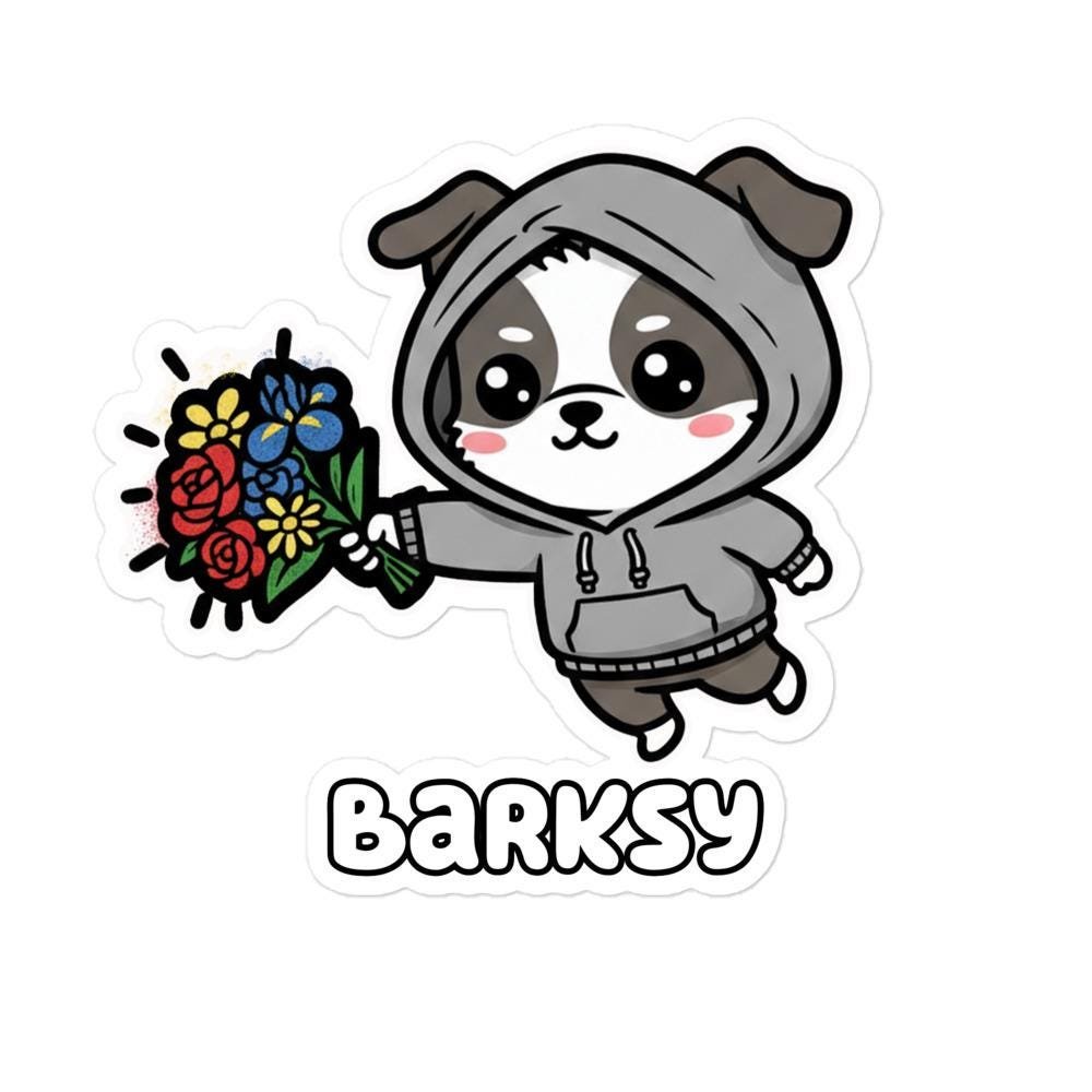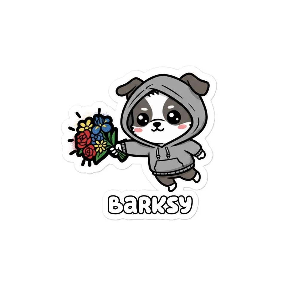 Barksy Graffiti Dog Sticker | Banksy Style Pup with Flowers