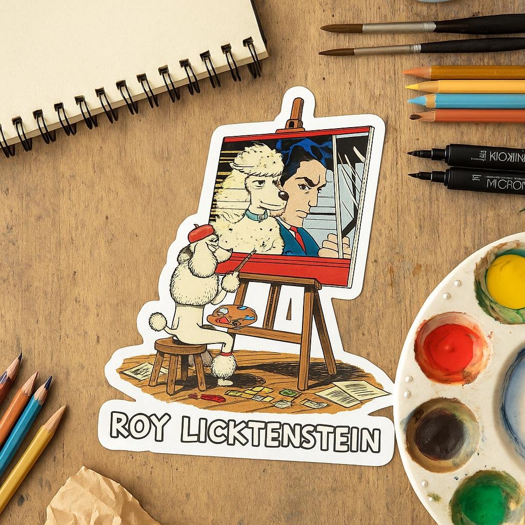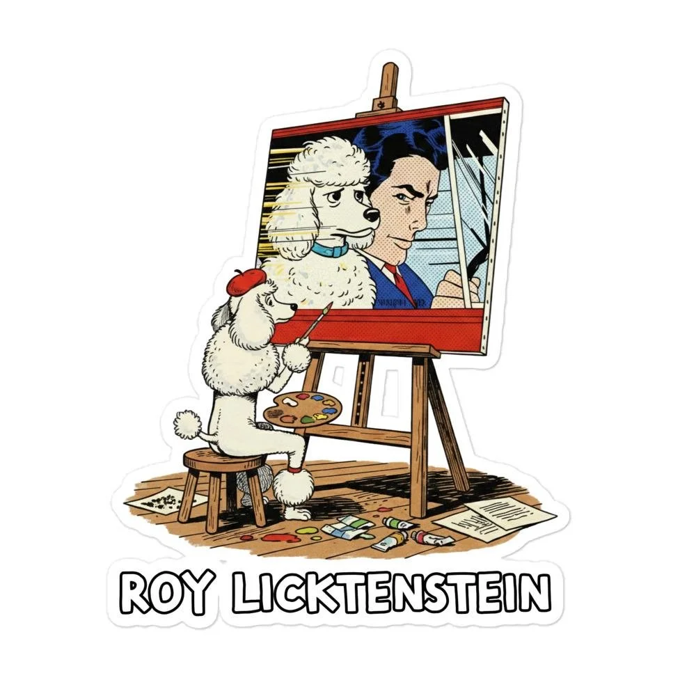 Roy Licktenstein Poodle Sticker | Pop Art Parody