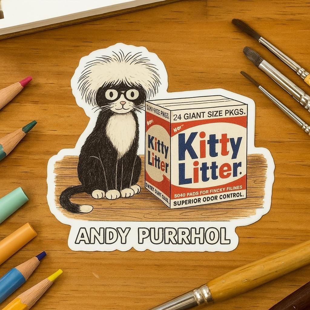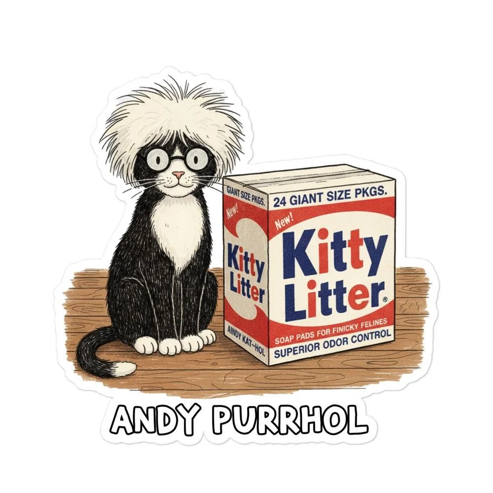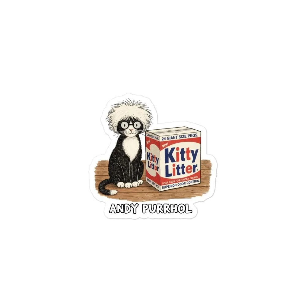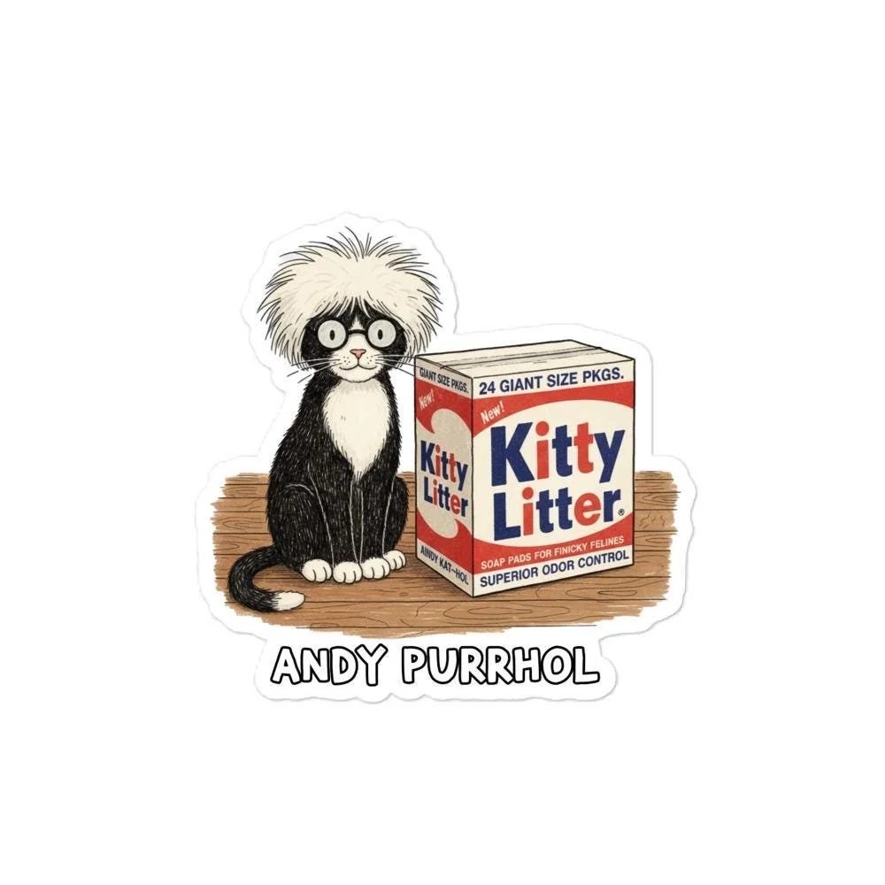 Andy Purrhol "Kitty Litter" Sticker | Pop Art Cat Parody
