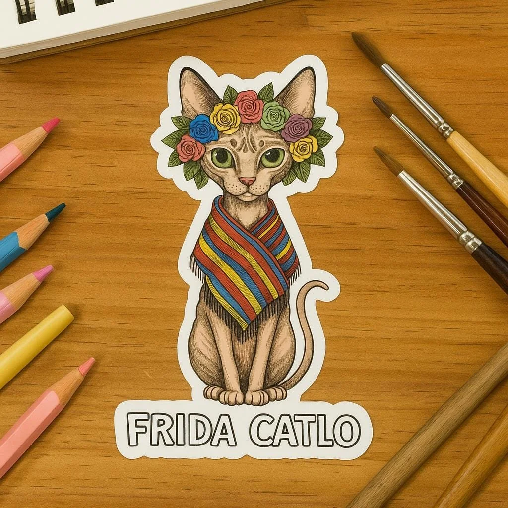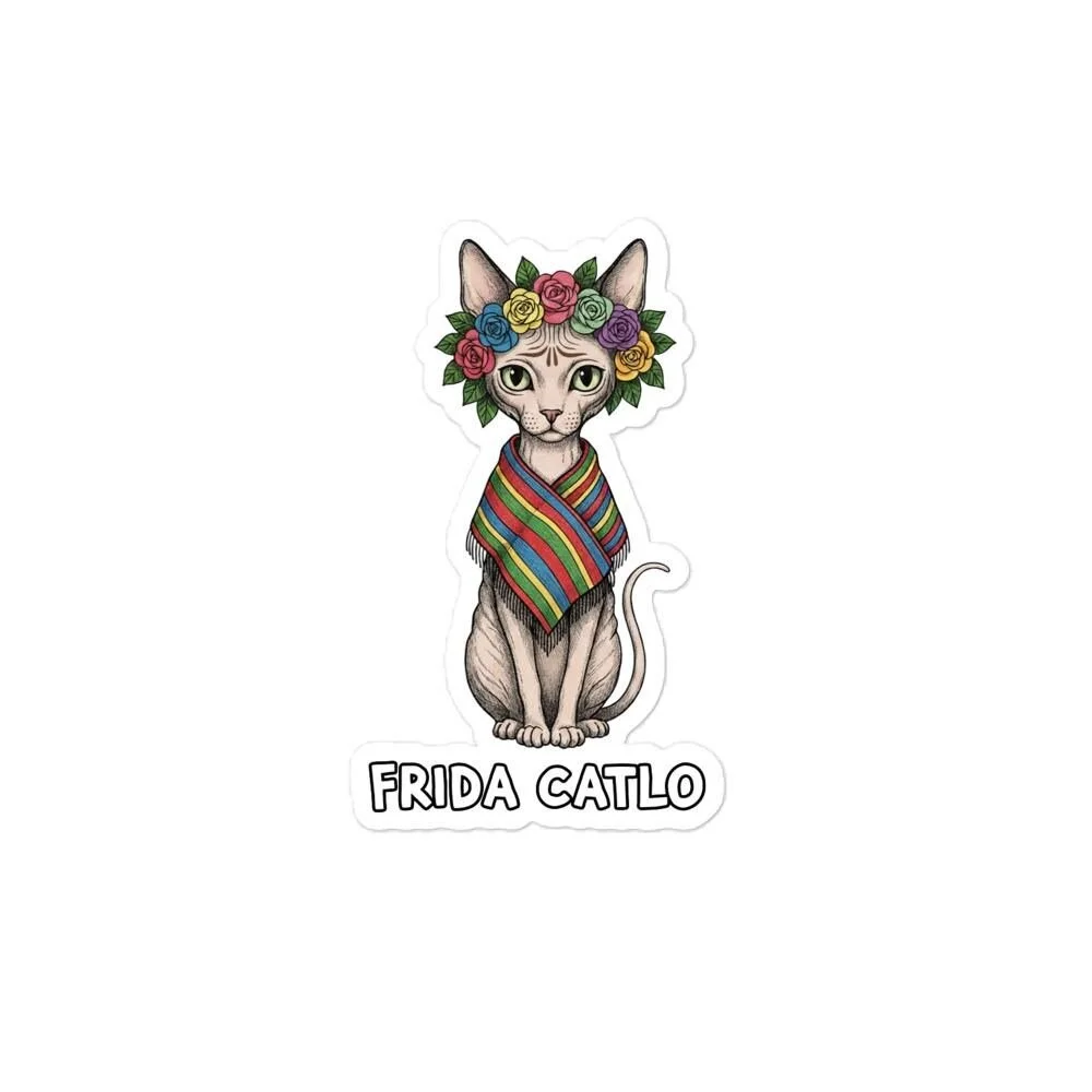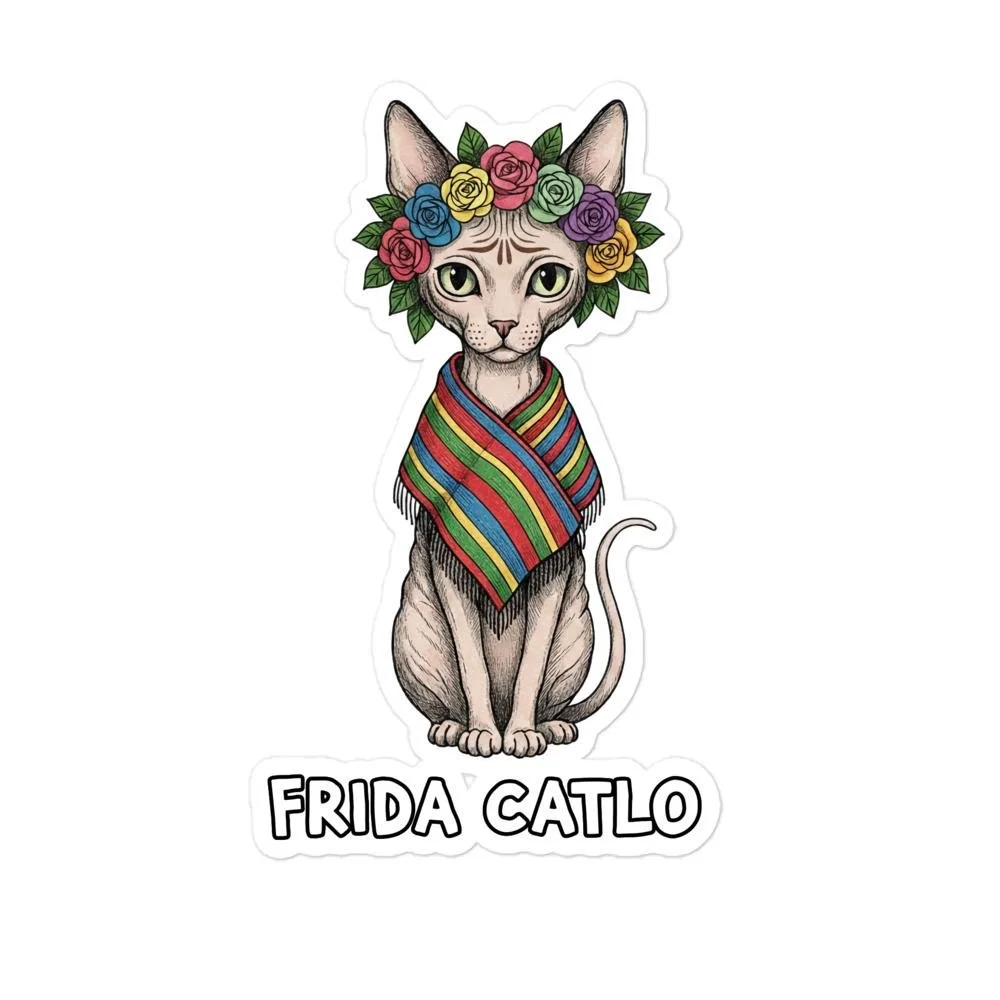 Frida Catlo Sticker | Feminist Art, Cat Lover Gift