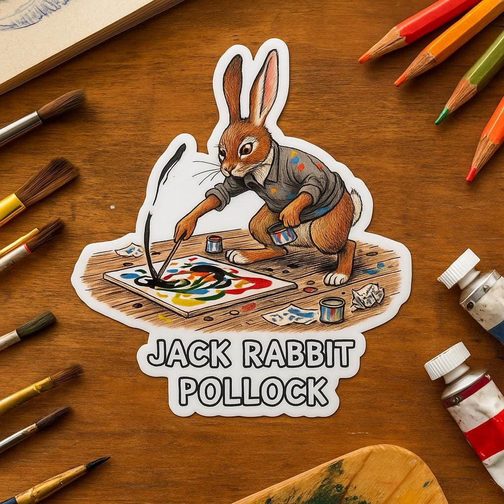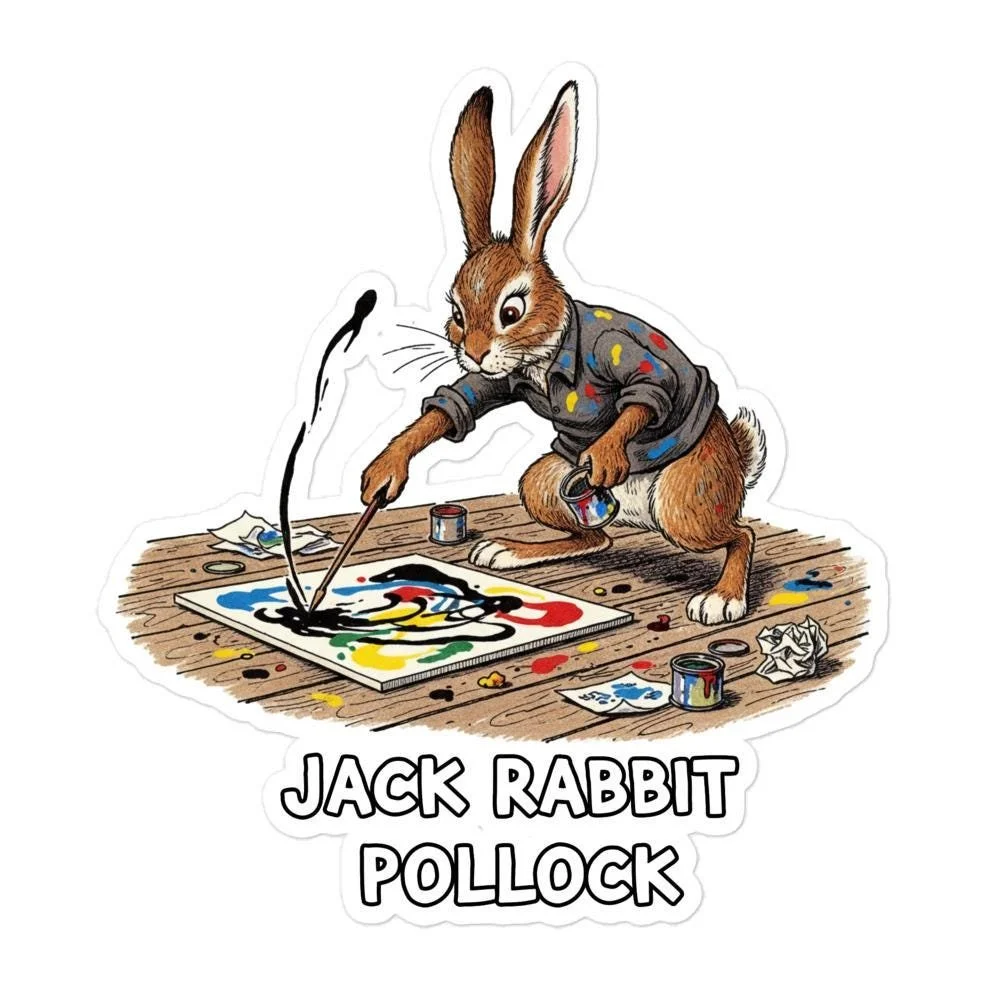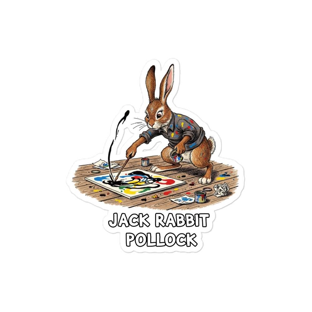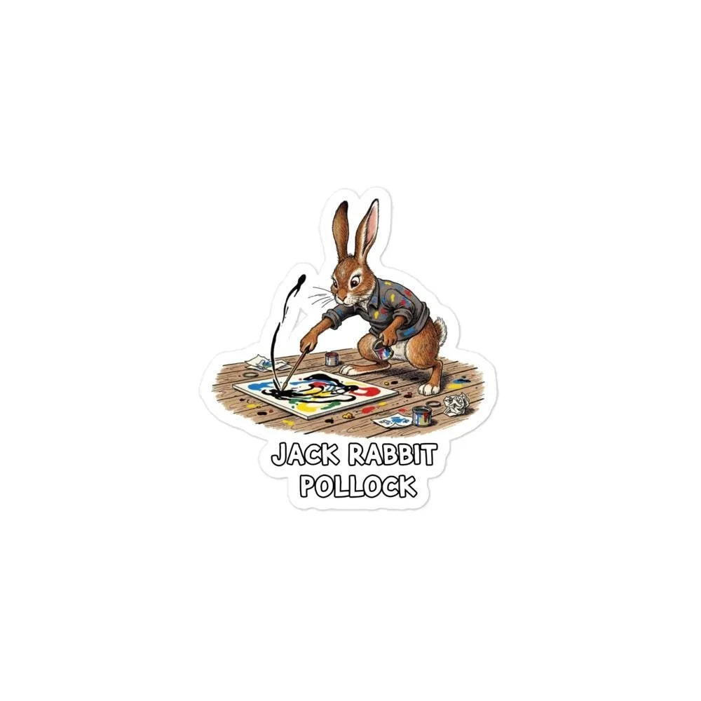 Jack Rabbit Pollock Sticker | Funny Abstract Expressionist Bunny Art