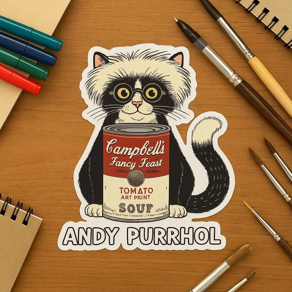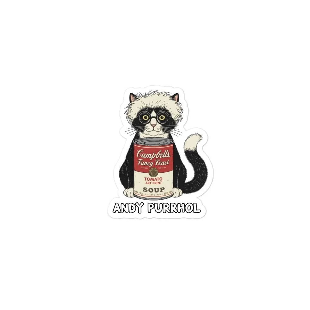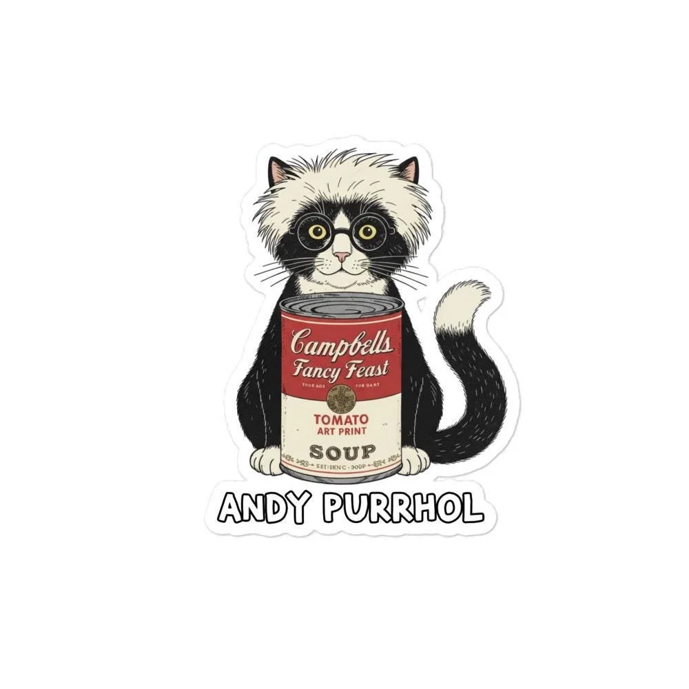 Andy Purrhol “Soup Can” Sticker | Pop Art Cat Parody