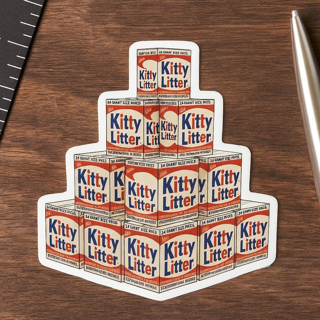 Andy Purrhol “Kitty Litter Boxes” Sticker | Pop Art Parody